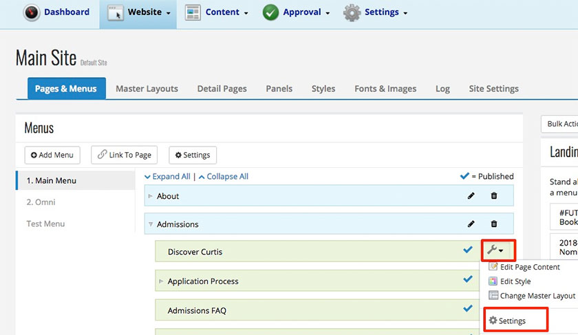 Після написання тегів заголовків і метаописів, введення їх у повідомлення onMessage просте. На вкладці "Сторінки та меню":