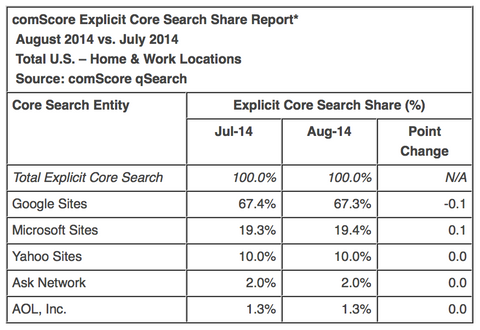 Станом на серпень 2014 року, 29,4% пошукових запитів "працює на Bing" складають 29,4% пошуків відповідно до цього звіту.