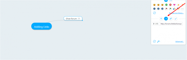Если вы использовали MindMeister для мозгового штурма, вы увидите, что у него есть возможность вставлять ссылки или файлы. Если у вас есть ветка, которая больше всего относится к выбранной ссылке, перейдите в меню справа.