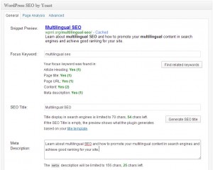 Мы используем и рекомендуем использовать расширение поисковой оптимизации под названием WordPress SEO от Yoast , Его легко понять и использовать, он выполняет свои задачи и прекрасно взаимодействует с WPML для многоязычных сайтов. Он облегчает доступ к основным функциям и включает в себя самые сложные инструменты, когда они вам нужны.