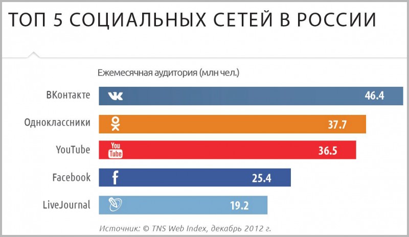 Miesięczny portal społecznościowy „VKontakte” odwiedza ponad 46 milionów użytkowników. Każdego miesiąca około 27 000 000 odwiedzających w wieku od 18 do 44 lat przegląda filmy z YouTube. Jak zamienić rozpuszczalnikową część Runeta w swoich klientów, uczyć się z książki „Promocja w sieciach społecznościowych. Dane, trendy, zalecenia » . Nowa książka z serii „Ask Ingate” useful jest użytecznym przewodnikiem, który od początku do końca opiera się na aktualnych statystykach dotyczących użytkowników sieci społecznościowych i ich preferencji.