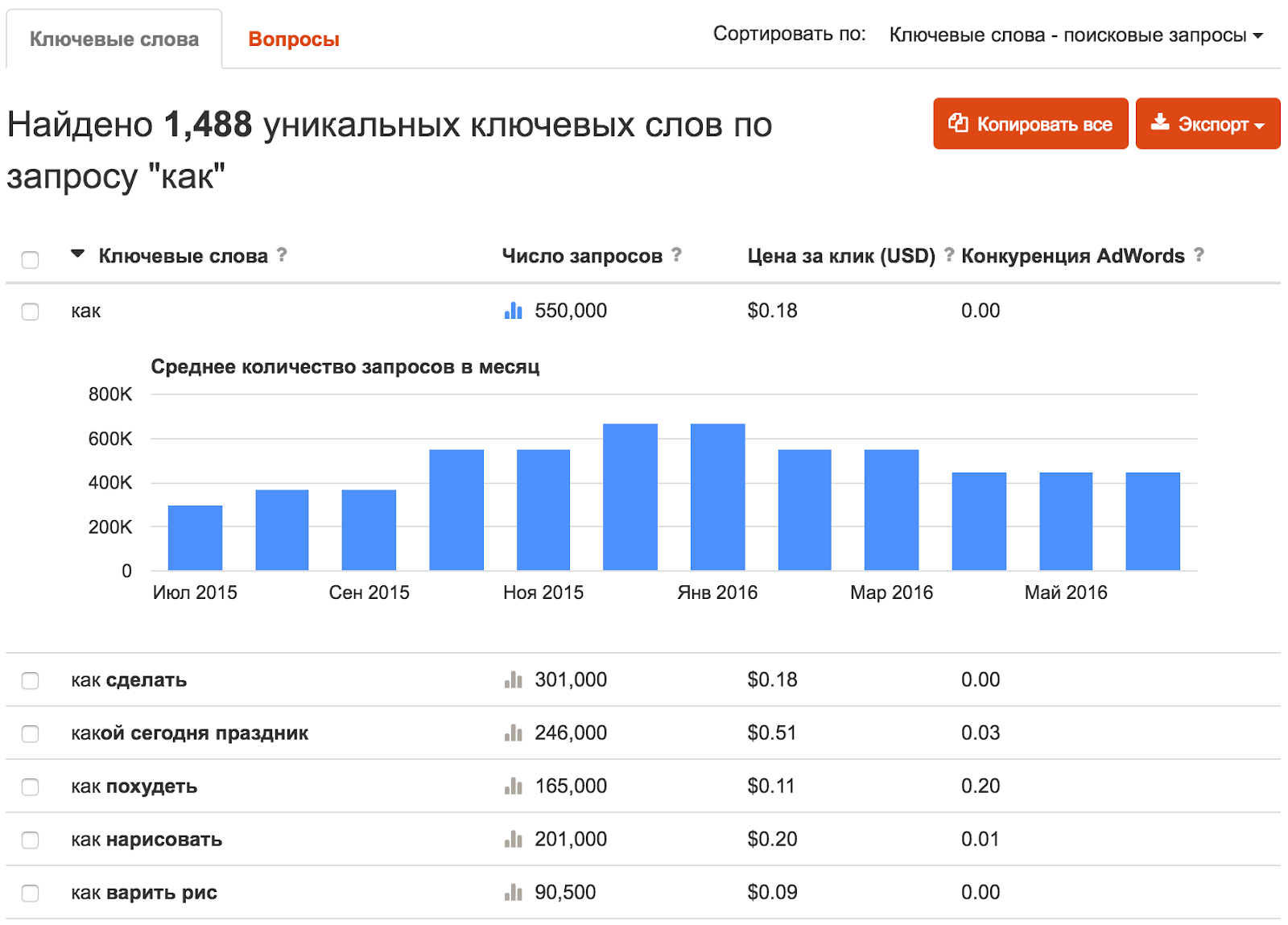 Відзначимо, що разом з цим інструментом також можна використовувати ще один сервіс Google - «Google Trends» для пошуку трендових (швидкозростаючих) запитів.