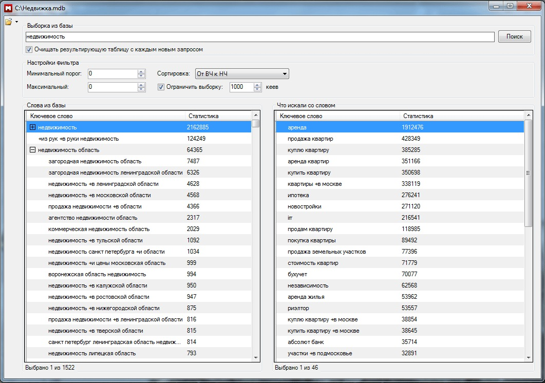 - дозволяє налаштовувати фільтри для вибірки ключових слів з бази;