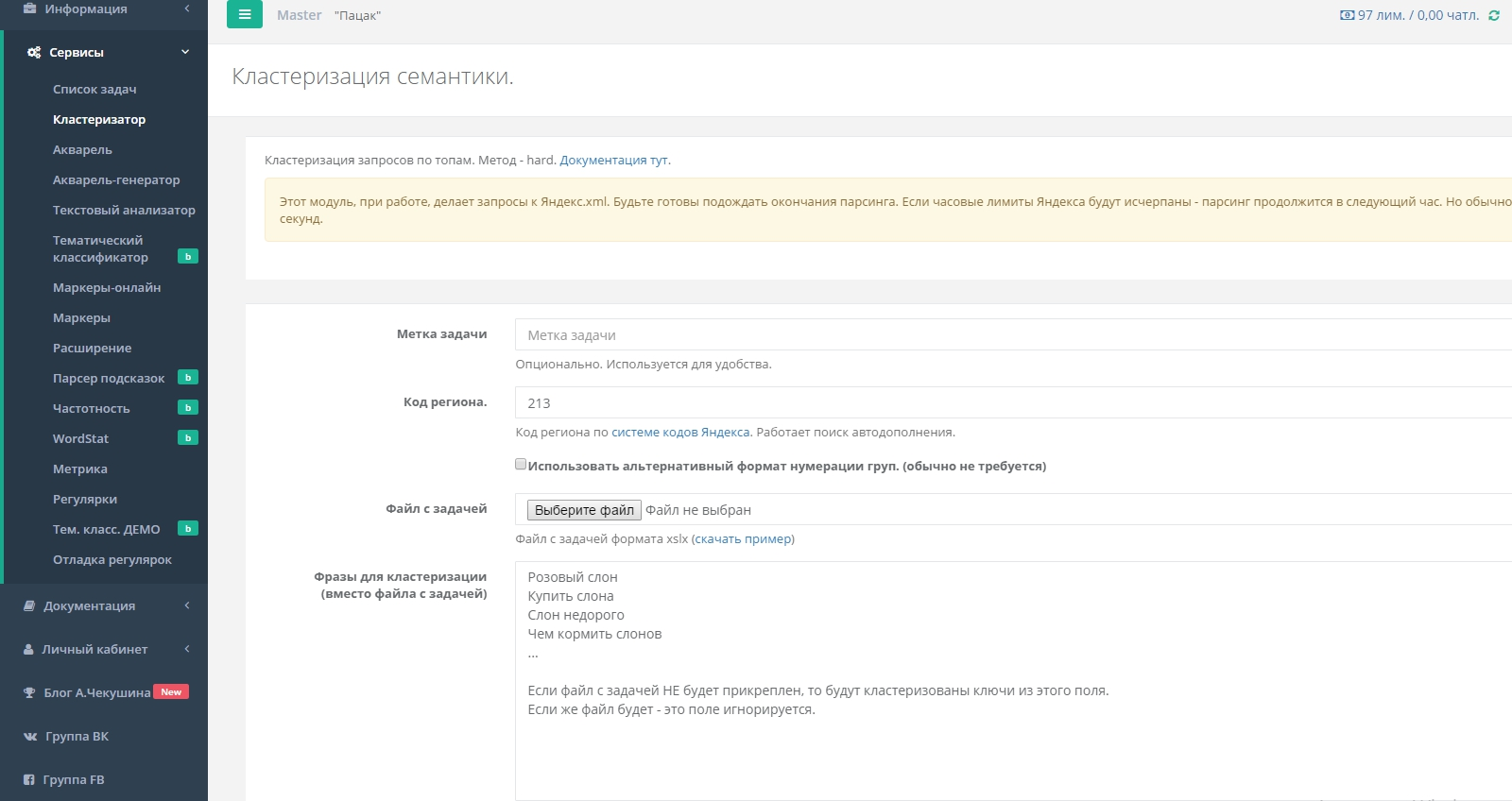 Система, яка автоматично підбирає семантичне ядро для сайту за допомогою власних баз, а також визначає ключові запити для сайту на підставі його Яндекс.Метрики.
